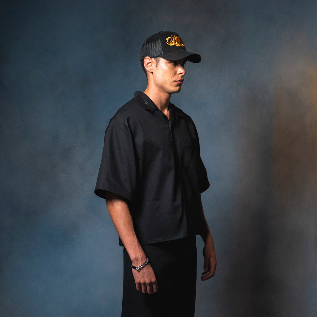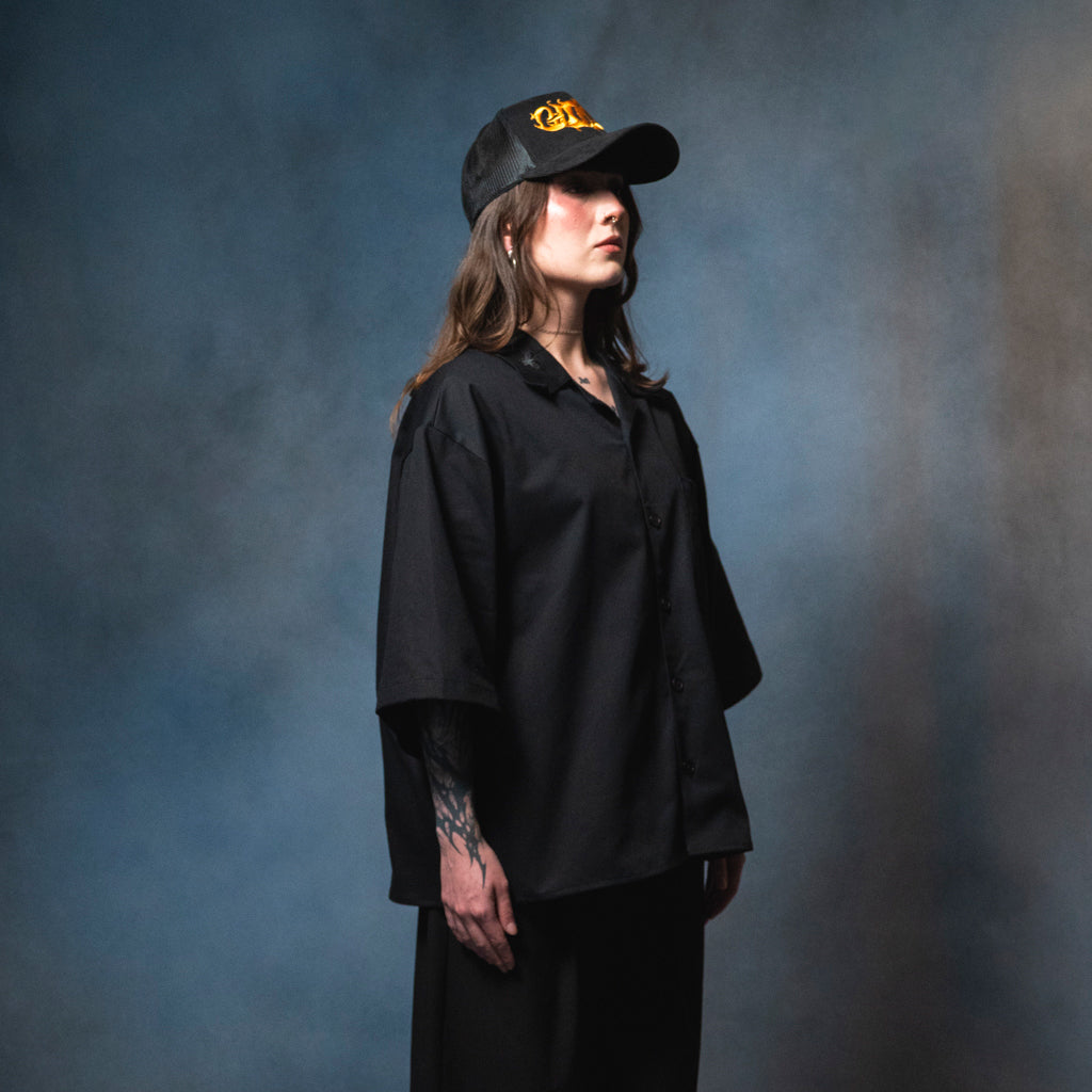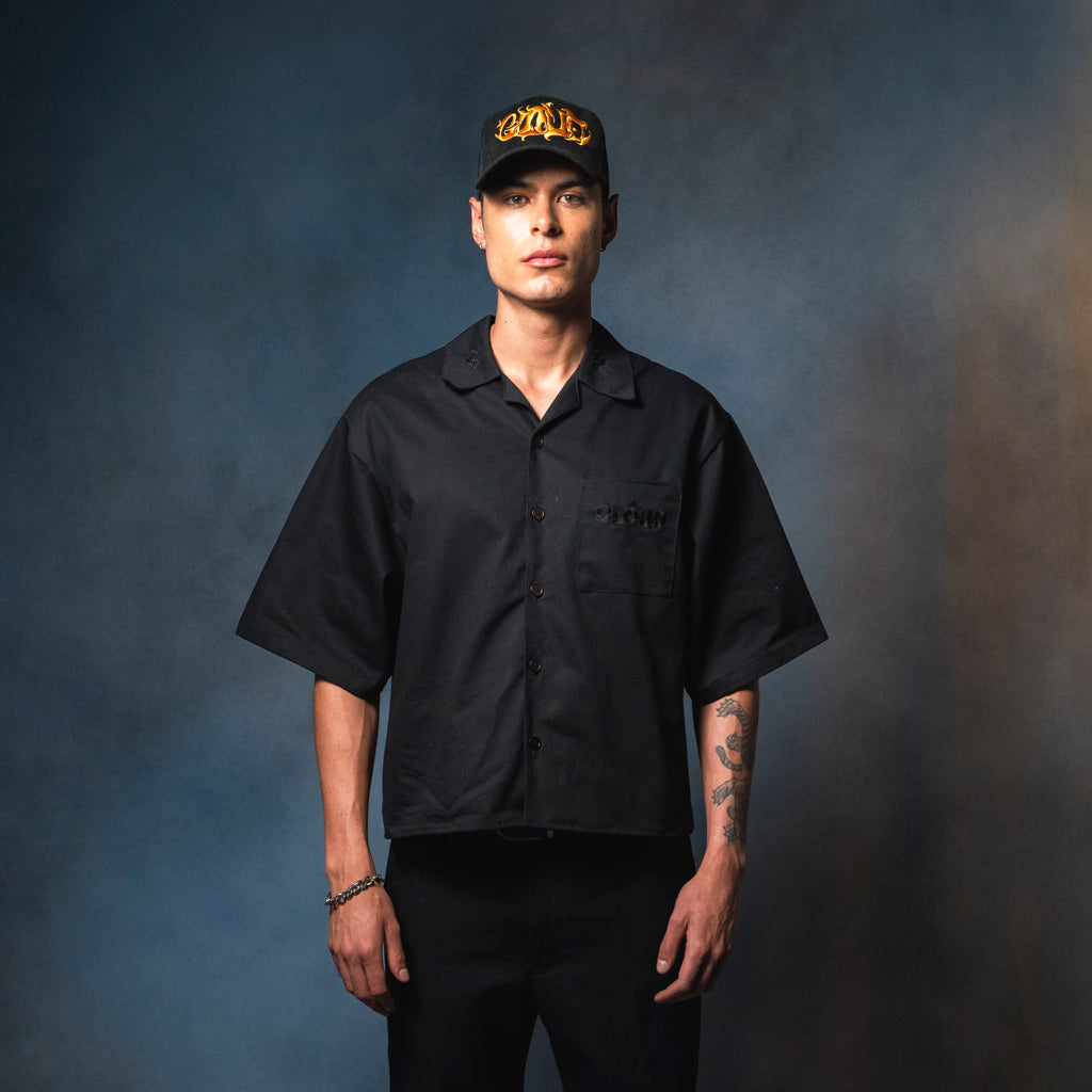 Camisa boxy fit en drill negro 100% algodón.