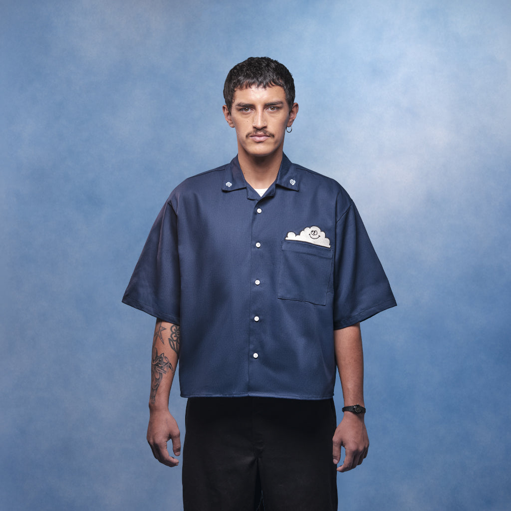 Camisa boxy fit en drill azul 100% algodón.