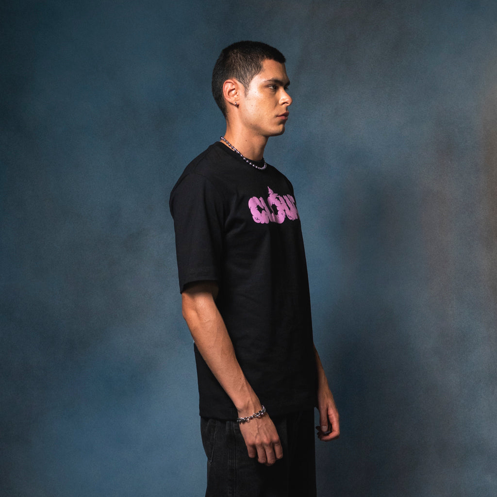 Camiseta en horma regular fit en color negro, 100% algodón de 265 gr.