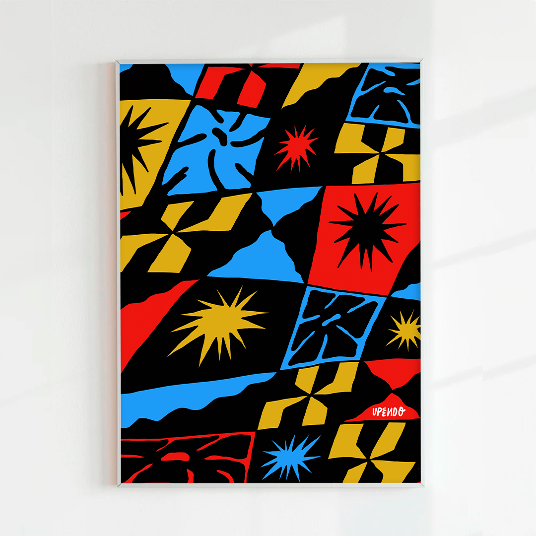 Print hecho con serigrafía plana a 4 tintas en Bogotá, Colombia. Este print es una colaboración con upendo_, un artista surrealista-abstracto de Los Ángeles que fusiona el grafiti y el arte callejero con influencias musicales, culturales y sociales. Su estilo se caracteriza por el uso del blanco y negro, el equilibrio y la composición.